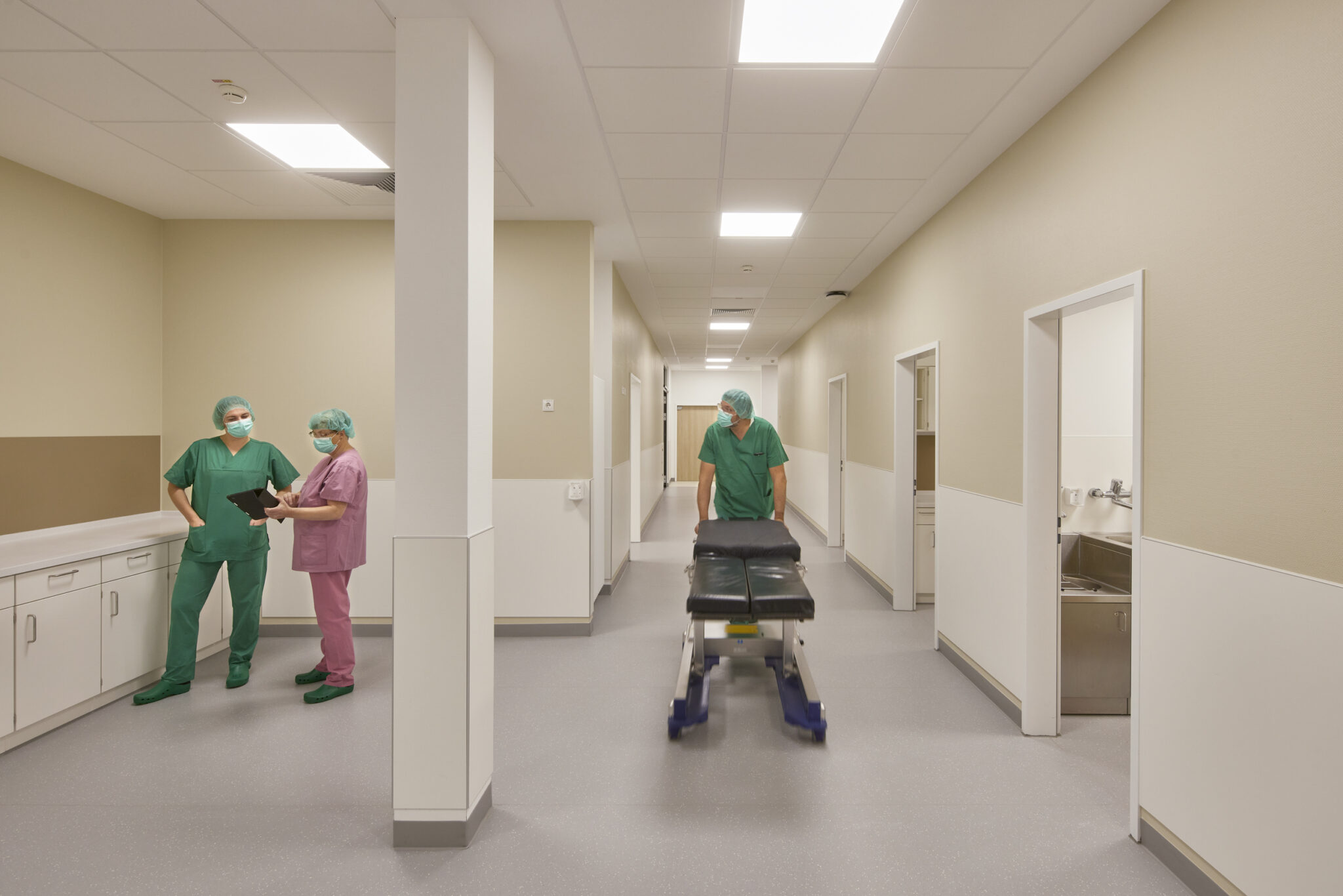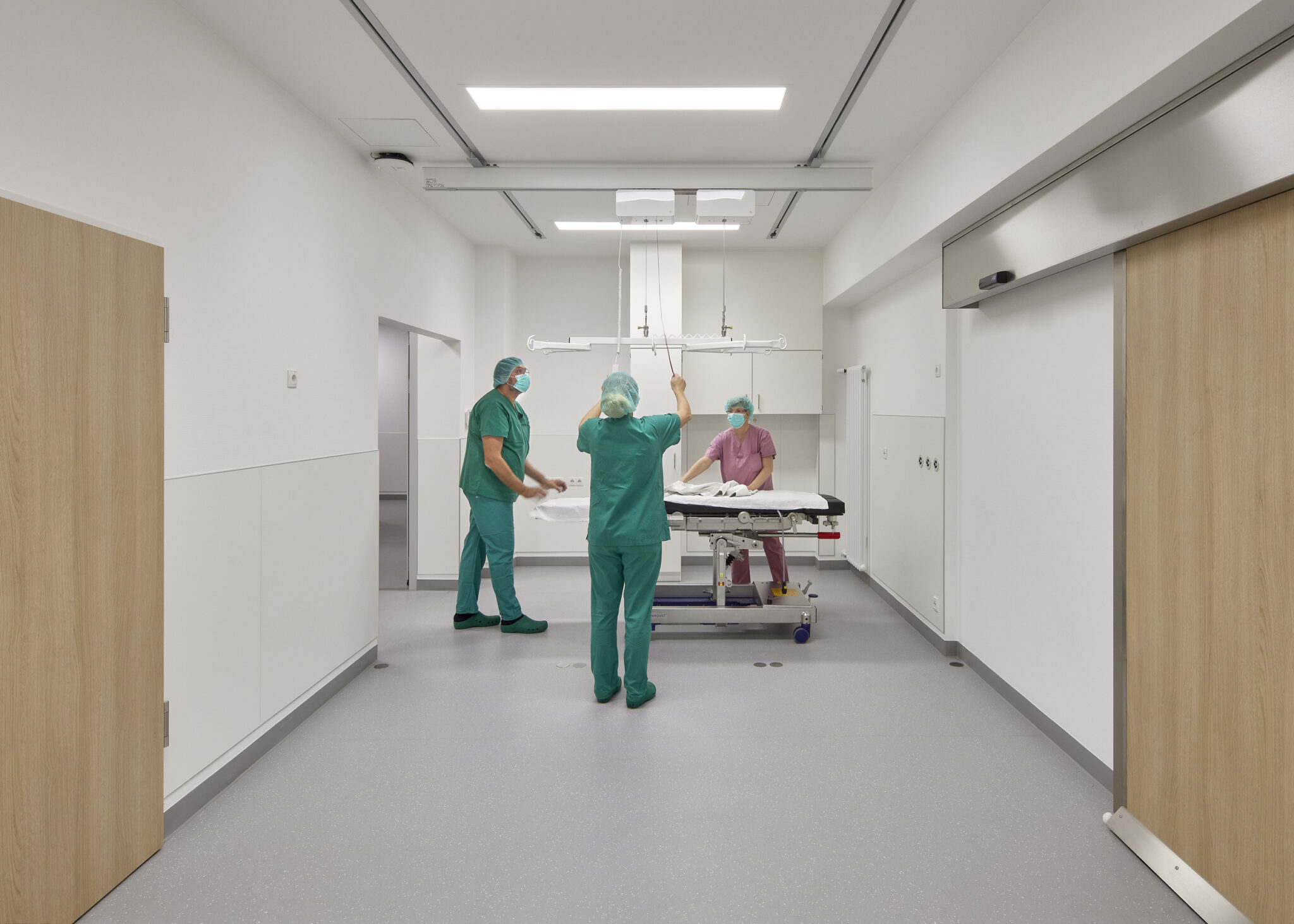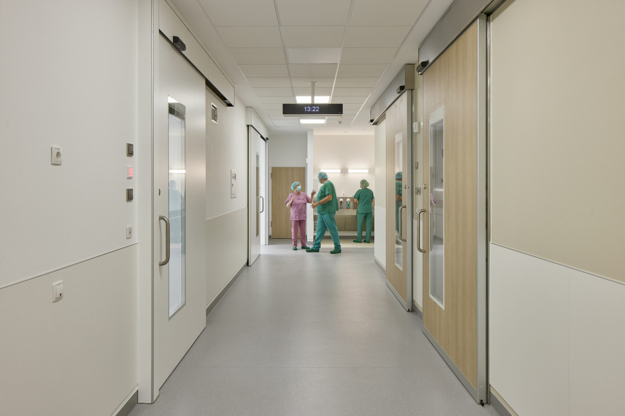 „Im neuen OP-Trakt entstanden zusätzliche Flächen für vier stationäre OP-Säle, einen Hybrid-OP sowie die erforderlichen Nebenräume.“ – Karla Katzwinkel, Architektin, Krampe Schmidt Architekten