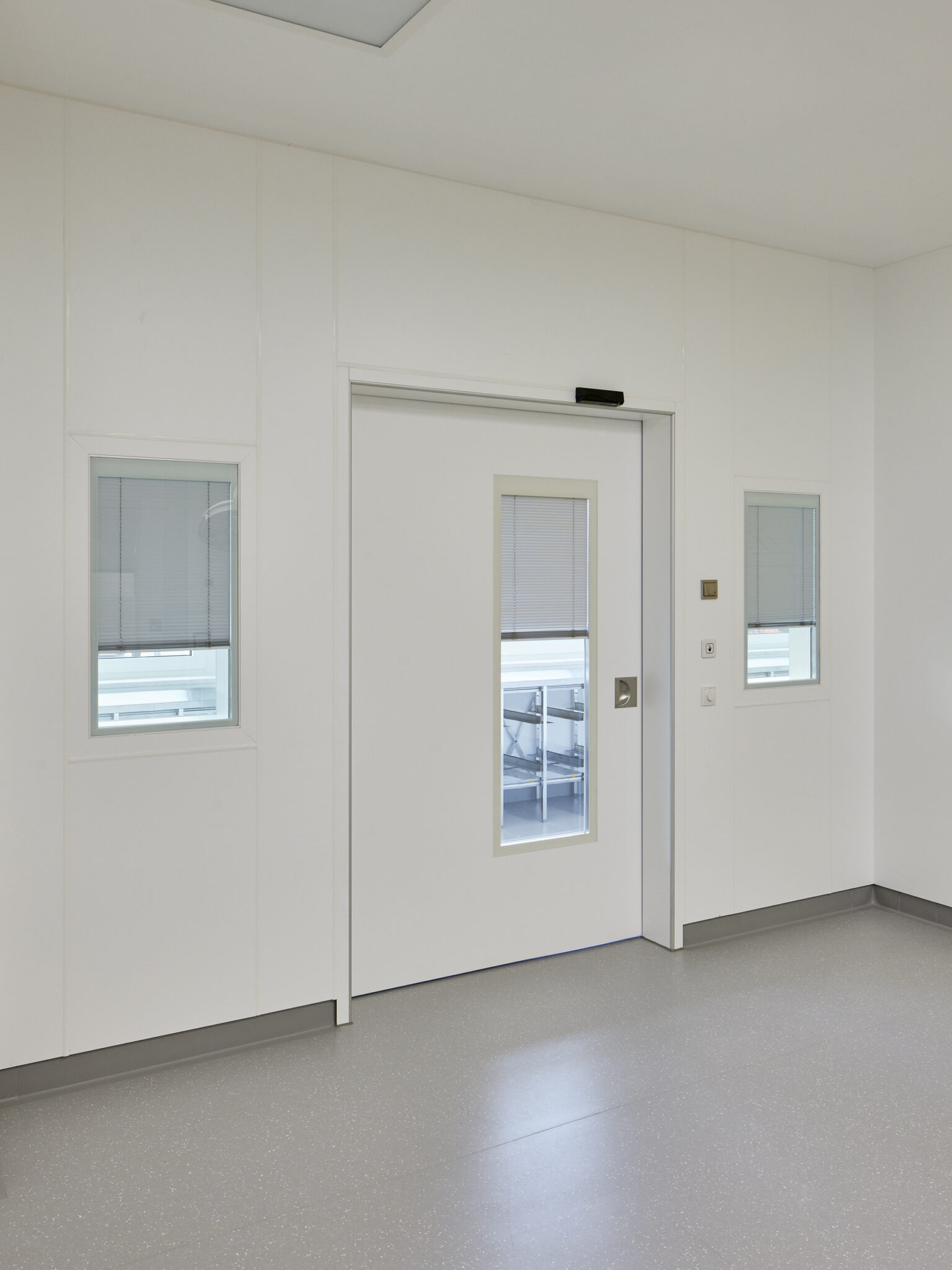 Tageslicht gelangt über Fensteröffnungen der Türen und Wände in den OP-Saal.