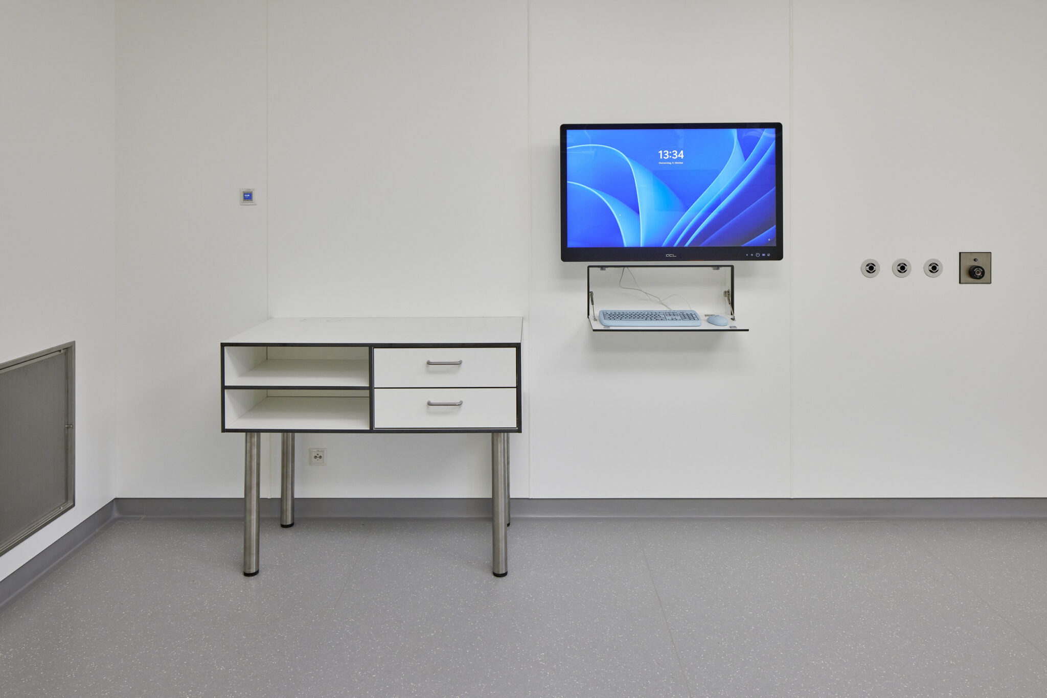 Der Dokumentationsplatz bietet eine in die Wand integrierte Tastatur.