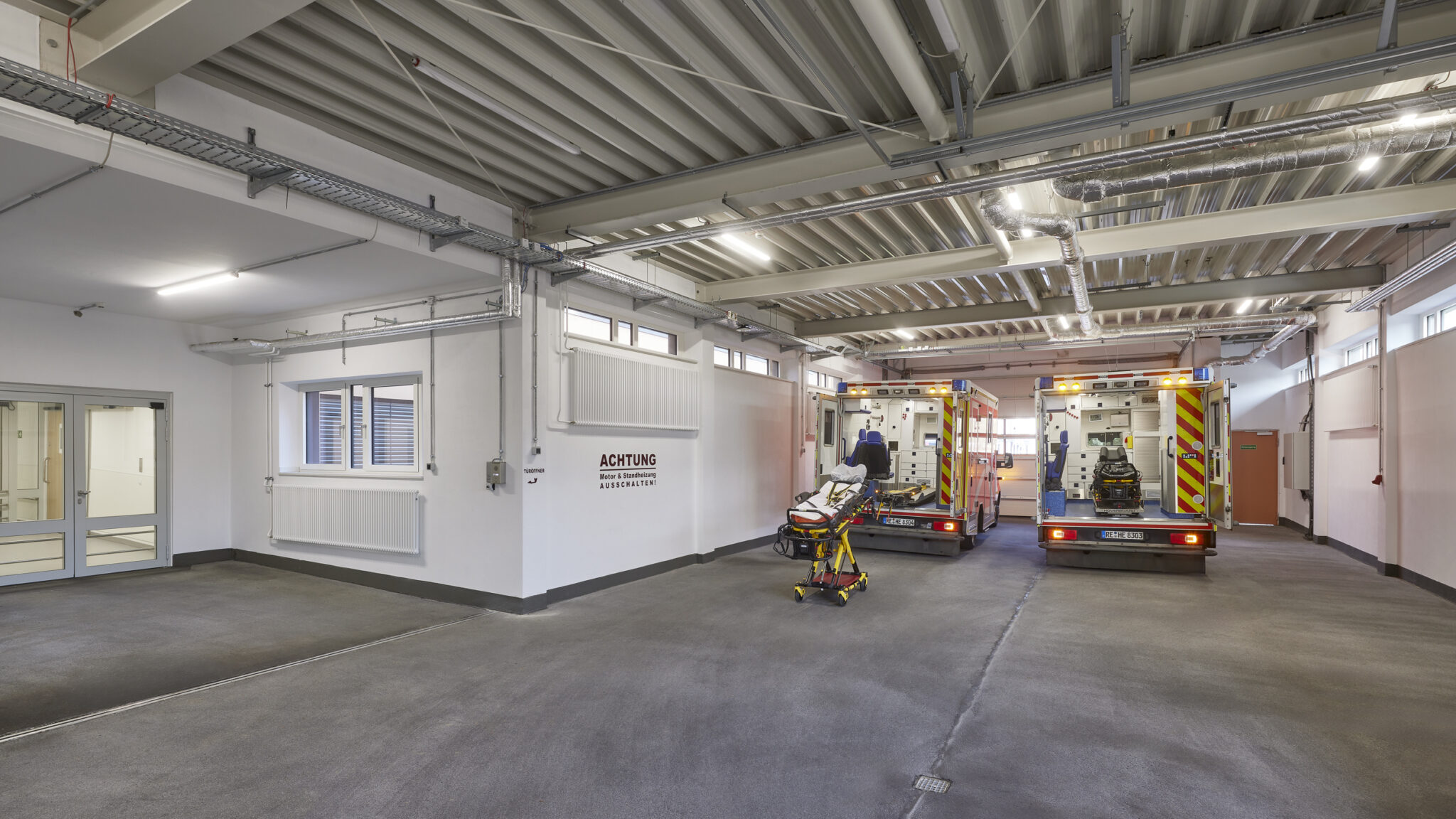 Die neue Zufahrt ist als Schleusensystem organisiert und erlaubt ein großzügiges Rangieren der Einsatzfahrzeuge.